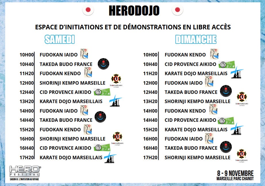 Merci pour leur confiance ! Vous nous retrouverez sur l’espace HeroDojo pour des démonstrations et animations aux heures de passages ci-dessous :